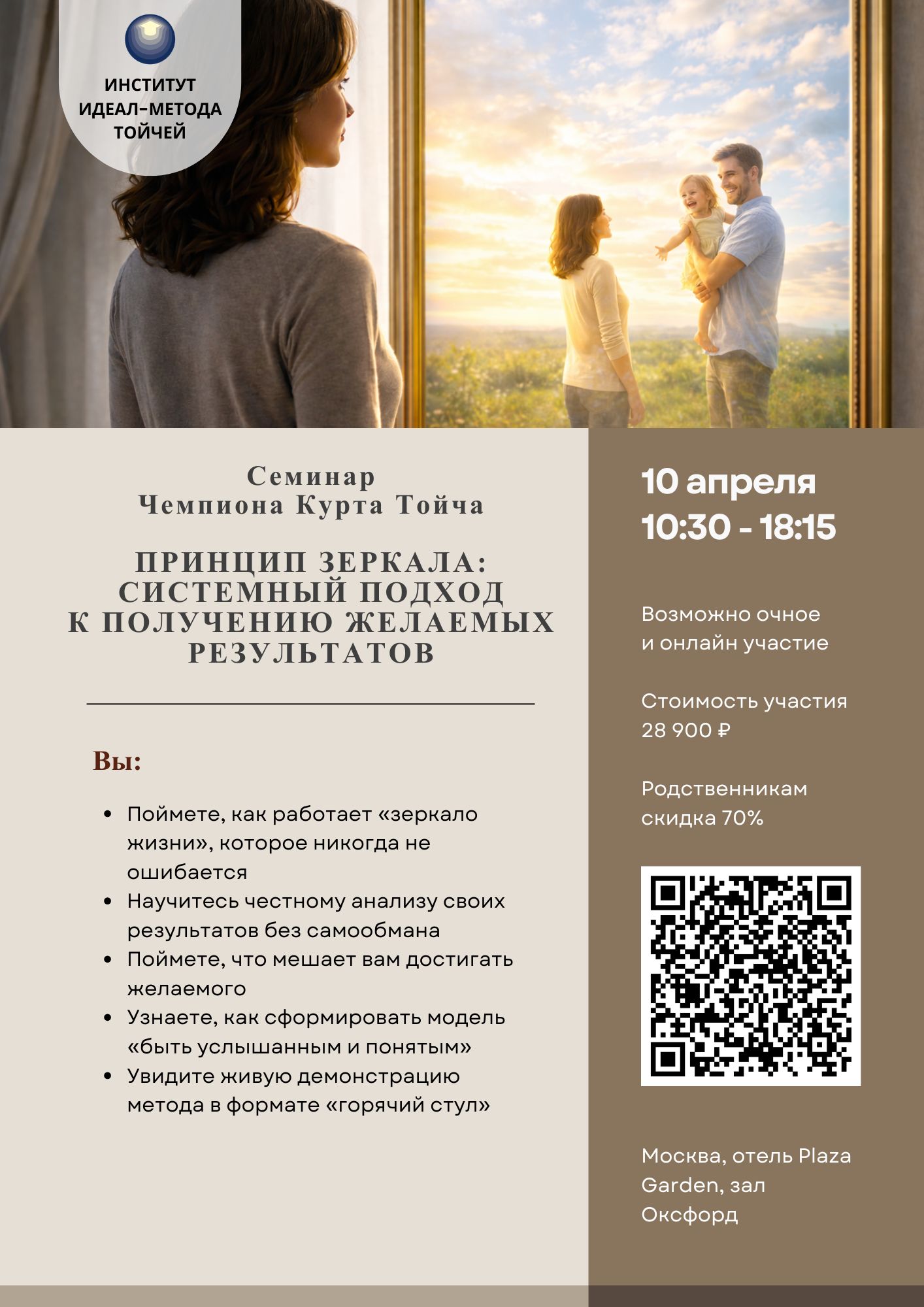 🔸 10 апреля | Семинар Чемпиона Курта Тойча «Принцип зеркала: системный подход к получению желаемых результатов».