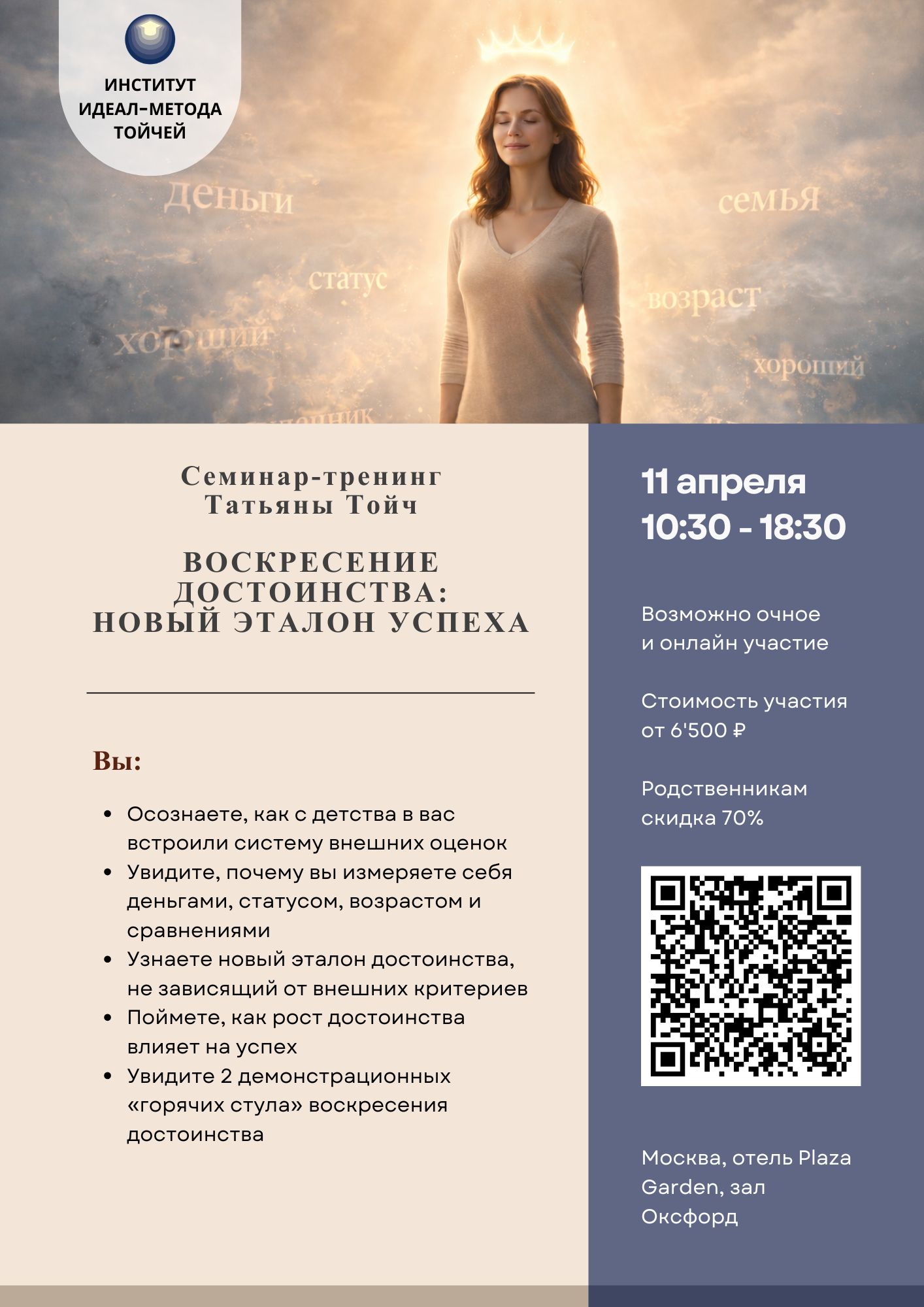 🔸 11 апреля | Семинар-тренинг Татьяны Тойч «Воскресение достоинства: новый эталон успеха».
