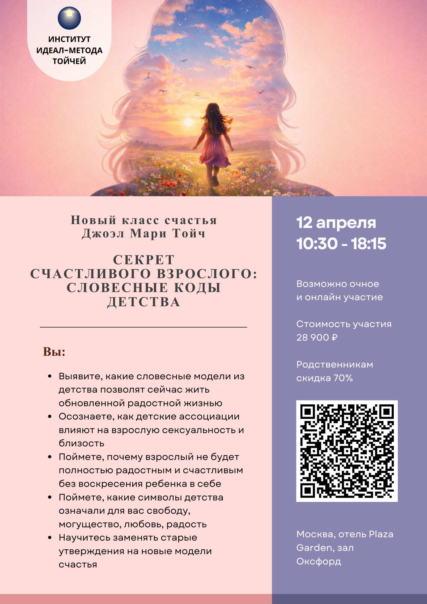 🔸 12 апреля | Класс счастья Джоэл Мари Тойч «Секрет счастливого взрослого: словесные коды детства».